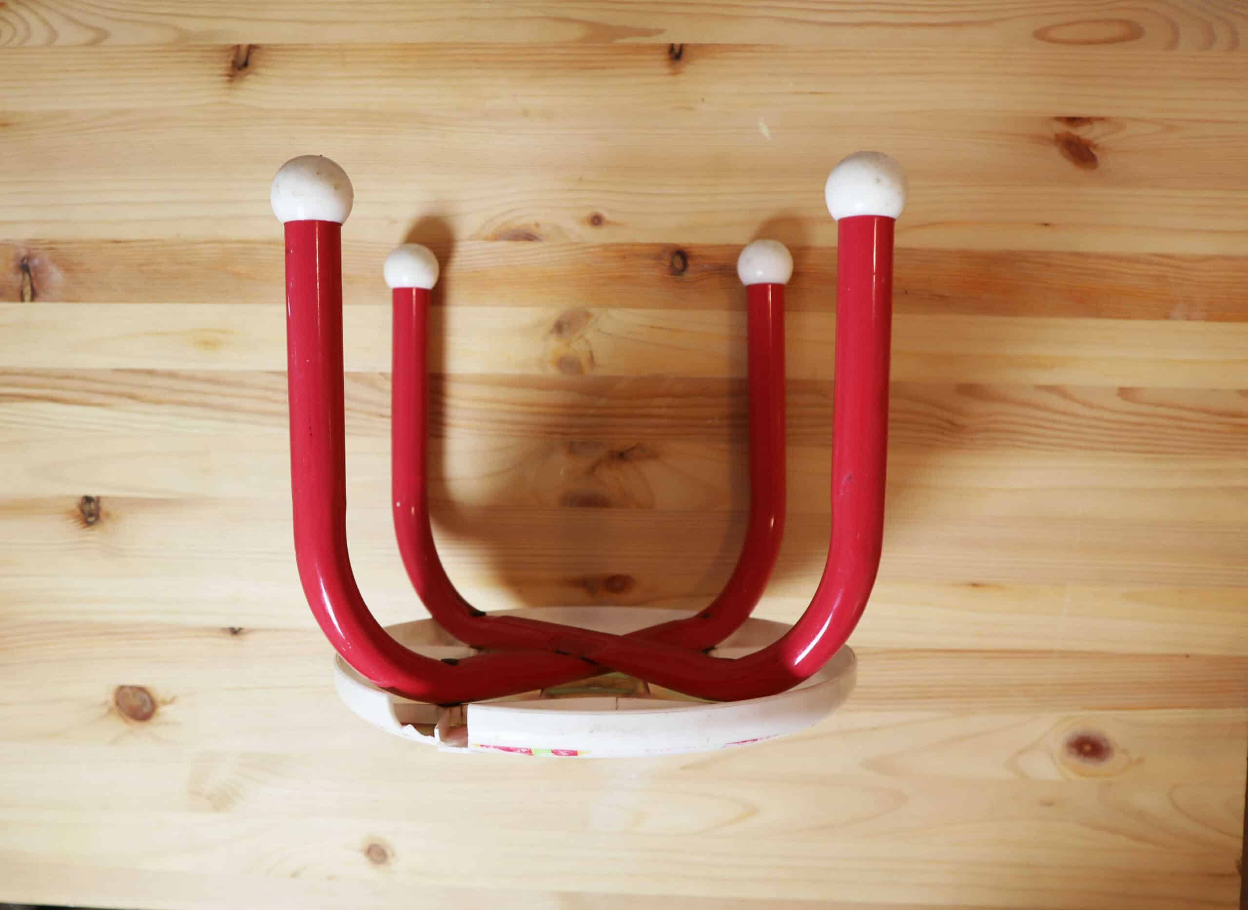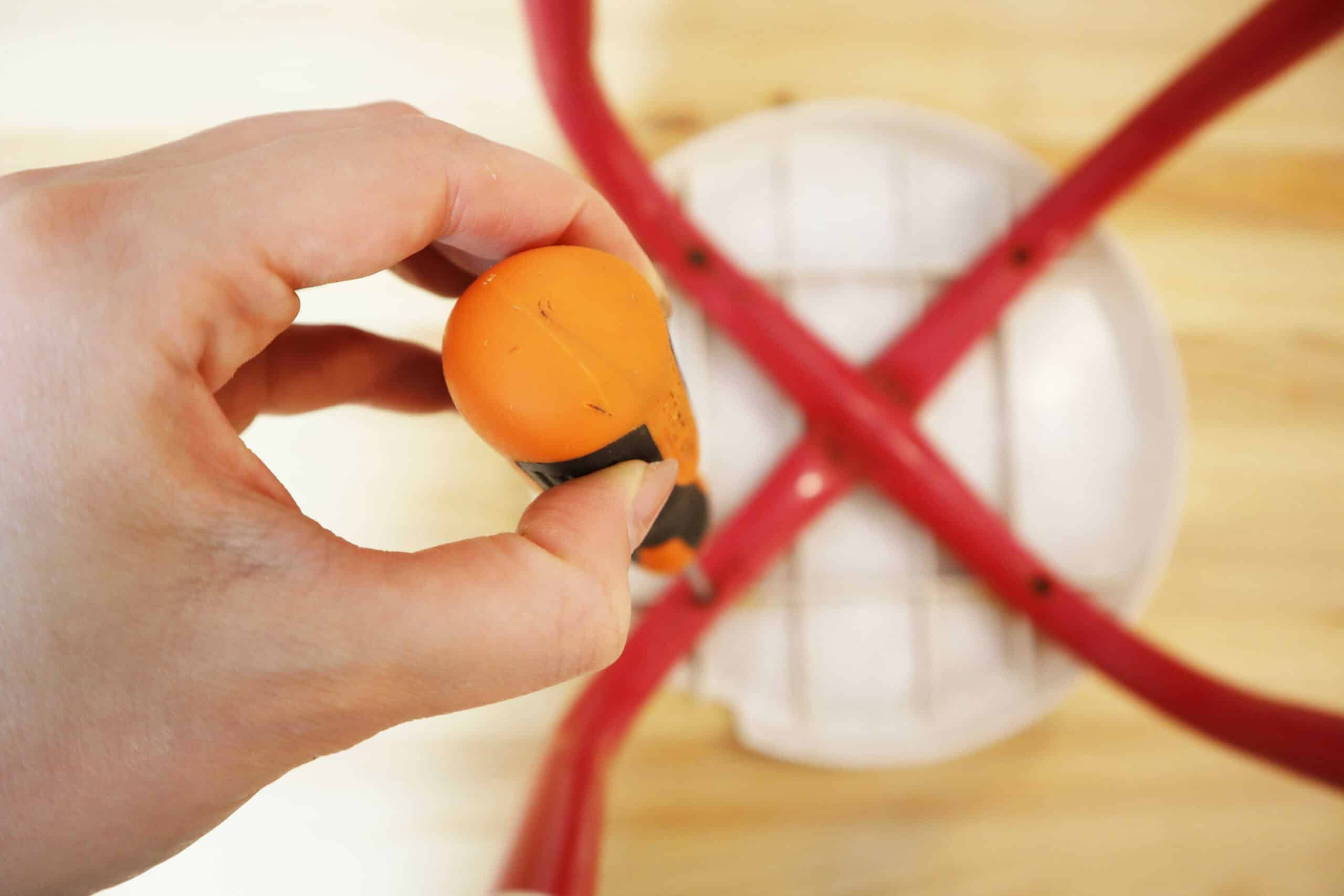 (במידה ויש לכם פלסטיקים בתחתית הרגלים שחררו גם אותם) מנקים את הכסא הישן מאבק או כל לכלוך אחר כדי שהצבע יתפס בצורה אחידה.